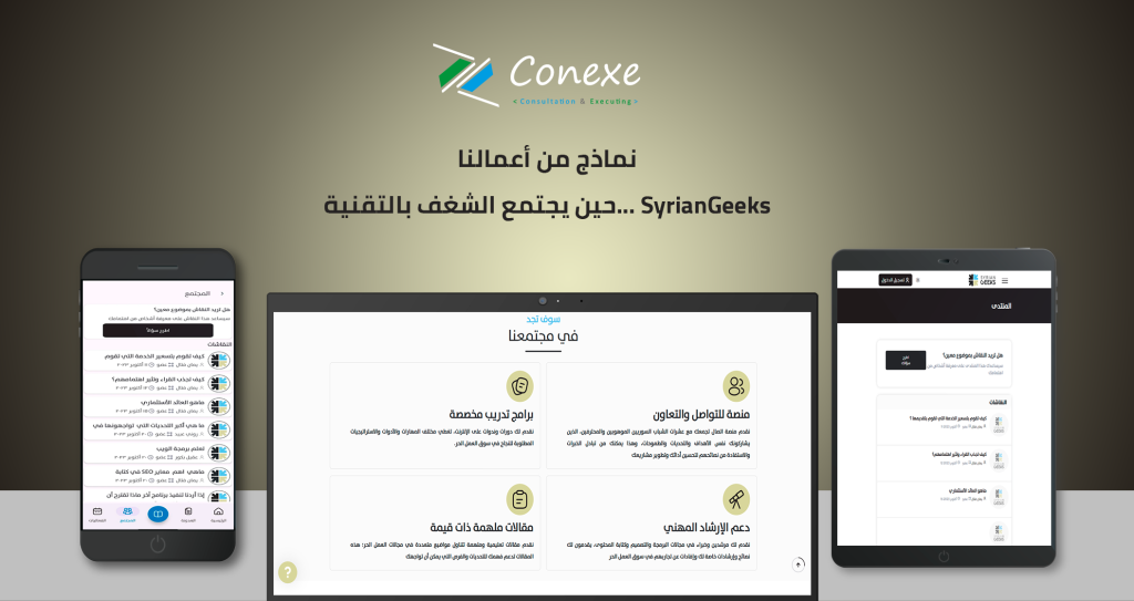 في إطار التزامنا في Conexe بتقديم حلول تقنية مبتكرة ومتكاملة، نفخر بالإعلان عن إنجاز أحد أبرز المشاريع الرقمية التي تعكس الأثر المجتمعي للتكنولوجيا، وهو مشروع تطوير منصة SyrianGeeks، التي تهدف إلى دعم وتمكين المجتمعات التقنية في سوريا ومناطق اللجوء من خلال مشاركة المعرفة وتنظيم الفعاليات التقنية.